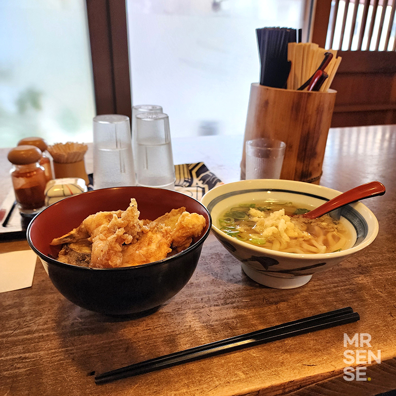 나는 텐동과 우동 세트를 시켜 먹었는데,