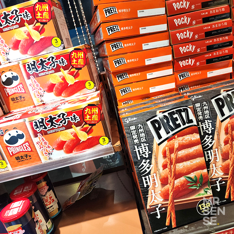 후쿠오카 명물 명란맛 과자가 쭉 있길래
